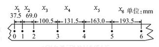 某同学用如右图所示装置测量重力加速度g,所用交流电频率为50 Hz。在所选纸带上取某点为0号计数点,然后每3个点取一个计数点,所有测量数据及其标记符号如下图所示