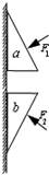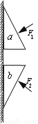 a、b为完全相同的截面为直角楔形物体,分别在垂直于斜边的恒力F1、F2 作用下静止在相同的竖直墙面上,如图所示.下列说法正确的是( )