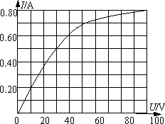 如图电路中R1=R2=100 Ω,是阻值不随温度而变的定值电阻.白炽灯泡L的伏安特性曲线如右边I-U图线所示.电源电动势E=100 V,内阻不计.求: