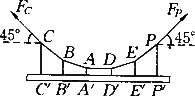 ,又已知两端钢缆与水平面成45°角.若钢杆自重不计,为使每根钢杆承受的负荷相同,试求每根钢杆的长度应各为多少?