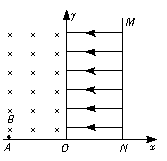 如图所示,坐标平面的第I象限内存在大小为E、方向水平向左的匀强电场,足够长的挡板MN垂直x轴放置且与O点距离为d,第II象限内存在垂直于纸面向里的匀强磁场,磁感应强度为B。一质量为m,带电量为-q的粒子(重力忽略不计)若自距原点O为L的A点以一定的速度垂直x轴进入磁场,则粒子恰好到达O点而不进入电场。现该粒子仍从A点进入磁场,但初速度大小为原来的4倍,为使粒子能进入电场且垂直到达挡板MN上,求: