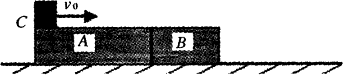 如图所示,A、B两木块靠在一起放于光滑的水平面上,A、B的质量分别为mA=2.0 kg、mB=1.5 kg。一个质量为mC =0.5 kg的小铁块C以v0=8 m/s的速度滑到木块A上,离开木块A后最终与木块B一起匀速运动.若木块A在铁块C滑离后的速度为vA=0.8 m/s ,铁块C与木块A、B间动摩擦因数均为μ=0.4,取g=l0m/s2。求:①铁块C在滑离A时的速度;②木块B的长度至少为多长。