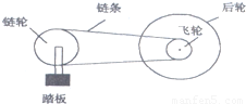 某种变速自行车,有六个飞轮和三个链轮,如图所示,链轮和飞轮的齿数如下表所示,前后轮直径为660mm,人骑该车行进速度为4m/s时,脚踩踏板做匀速圆周运动的角速度最小值约为