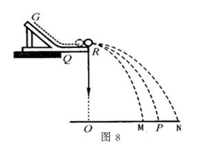 某同学用图8所示的装置,通过半径相同的A、B两球的碰撞来验证动量守恒定律。实验要证明的是动量守恒定律的成立,即m1v1=m1v1′+m2v2′。按这一公式的要求需测量两小球的质量和它们碰撞前后的水平速度,但实验中我们只需测量两小球的质量和飞行的水平距离。这是由于小球碰撞后做