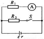 如图所示电路中,电池内阻符号为r,电键S原来是闭合的.当S断开时,电流表( )![]()