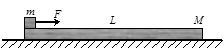 (8分)如图所示,质量M = 4.0 kg的木板长L = 2.0 m,静止在水平地面上,木板与地面间的动摩擦因数为μ1=0.05。木板水平上表面左端静置质量m = 2.0 kg的小滑块(可视为质点),小滑块与板间的动摩擦因数为μ2 = 0.2。从某时刻开始,用F=5.0 N的水平力一直向右拉滑块,直至滑块滑离木板。设木板与地面间的最大静摩擦力等于滑动摩擦力,取g =10 m/s2。试求:
