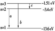 如图所示,氢原子在不同能级间可发生a、b、c发生跃迁时,释放光子的频率分别是υa、υb、υc,则下列说法正确的是![]()