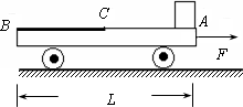 如图所示,光滑水平地面上停着一辆平板车,其质量为2 m,长为L,车右端(A点)有一块静止的质量为m的小金属块.金属块与车间有摩擦,以中点C为界,AC段与CB段动摩擦因数不同.现给车施加一个向右的水平恒力,使车向右运动,同时金属块在车上开始滑动,当金属块滑到中点C时,即撤去这个力.已知撤去力的瞬间,金属块的速度为v0,车的速度为2v0,最后金属块恰停在车的左端(B点).求:
