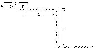 如图所示,高为h=10m的平台上,放一质量为M=9.9kg的木块,它与平台边缘的距离为L=1m.今有一质量m=0.1kg的子弹,以水平向右的速度