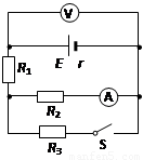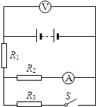 如图所示的电路中,R2=30Ω,R3=15Ω, S闭合时,电压表V的示数为11.4V,电流表A的示数为0.2A,S断开时,电流表A的示数为0.3A,求: