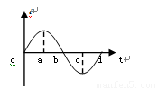 如图所示为LC振荡电路中振荡电流随时间变化的图像,o、a、b、c、d各时刻之间时间间隔相等,以下结论正确的是: