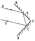某人造地球卫星的探测器上装有一个光反射器,其基本结构如图所示,平面镜MO与平面镜NO互相垂直,AB为地面接收站上激光器发出的一束入射光,CD为AB经平面镜两次反射后被接收站接收的反射光线,若光反射器受到外界的干扰而绕过O点且垂直于纸面的轴转过一个微小的角度,地面接收站是否还能接收到反射信号?试证明之.
