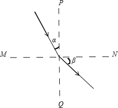 如图所示,平面MN是透明介质和真空的交界面,真空中的点A.B与介质中的点C在同一条直线上,且直线与平面交于P点.已知AB=BP=PC.分别由A.B点发出的a.b两种色光照到界面上的同一点Q点(图中未画出)后,进入介质中传播,都能够到达C点.则下列叙述正确的是