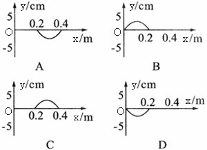 s,振动在介质中沿x轴正向传播,传播速度为1.0m/s。若质点在平衡位置O向上振动0.20s后立即停止振动,则停止振动后又经过0.20s的时刻的波形可能是图中的 ( )