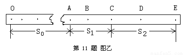 (6)利用这个装置也可以测量重锤下落的实际加速度a的数值.设某次实验打出如下图所示纸带,选取纸带上打出的连续五个点A、B、C、D、E,测出A点距起始点O的距离为s0,点A、C间的距离为s1,点C、E间的距离为s2,使用交流电的频率为f,则根据这些条件计算重锤下落的加速度a的表达式为:a= .![]()