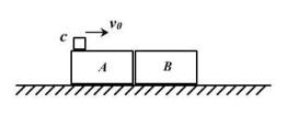 在光滑水平面上有两个并排放置的木块A和B,已知mA=500g,mB=300g,一质量为80g的小铜块C以25m/s的水平初速度开始在A表面上滑动,由于C与A、B之间有摩擦,铜块C最后停在B上,B和C一起以2.5m/s的速度共同前进,求: