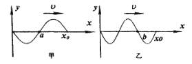 D、从图中时刻起,甲波中的质点a比乙波中的质点b先到达波谷。