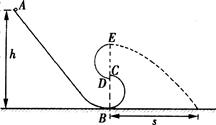 。从A点静止释放一个可视为质点的小球,小球沿翘尾巴的S形轨道运动后从E点水平飞出,落到水平地面上,落点到与E点在同一竖直线上B点的距离为s。已知小球质量m,不计空气阻力,求:![]()