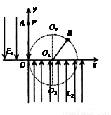 3)小球A从y轴上y>0的某些位置开始下落,恰好在O点与B合成为C后,不能够做经过02和03的圆周运动。求这些位置的范围?![]()