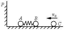 ﹙21分﹚在原子核物理中,研究核子与核子关联的最有效途径是“双电荷交换反应”.这类反应的前半部分过程和下述力学模型类似.两个小球A和B用轻质弹簧相连,在光滑的水平直轨道上处于静止状态.在它们左边有一垂直于轨道的固定挡板P,右边有一小球C沿轨道以速度v0射向B球,如图所示.C与B发生碰撞并立即结成一个整体D.在它们继续向左运动的过程中,当弹簧长度变到最短时,长度突然被锁定,不再改变.然后,A球与挡板P发生碰撞,碰后A、D都静止不动,A与P接触而不粘连.过一段时间,突然解除锁定(锁定及解除锁定均无机械能损失).已知A、B、C三球的质量均为m.求: