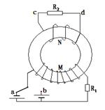M和N是绕在一个环形铁心上的两个线圈,绕法和线路如图所示。现将开关K从a处断开,然后合向b处,在此过程中,通过电阻R2的电流方向是( )