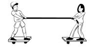 如图所示,男生甲和女生乙各站在一块滑板上,分别抓着轻绳的一端。甲与滑板的总质量为60 kg,乙与滑板的总质量为50 kg。忽略地面摩擦力。当甲以30 N的力量收回绳子时,乙双手不动,只紧抓着绳子。