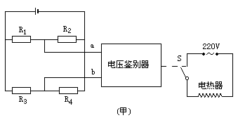 图(甲)为温度在10℃左右的环境中工作的某自动恒温箱原理图,箱内的电阻R1=20kΩ,R2=10kΩ,R3=40kΩ,R4为热敏电阻,它的电阻随温度变化的图线如图(乙)所示,当a,b间的电压Uab<0时,电压鉴别器会令开关S接通,恒温箱的电阻丝发热,使箱内的温度升高;当Uab>0时,电压鉴别器会令开关S断开,停止加热,恒温箱的温度恒定在________℃.