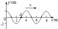 如图所示为一列沿x轴正方向传播的简谐横波在某时刻的波形图,A为沿传播方向上的某一质点(该时刻位于平衡位置),该时刻A质点的运动方向是 (填“向右”、“向左”、“向上”、“向下”).如果传播速度大小为10m/s,该质点振动的频率为 Hz,再经1s该质点位于 .
