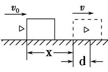 如图所示,质量为M=384g的木块放在光滑的水平面上,质量为m =20g的子弹以速度v0沿水平方向射中木块,并最终停留在木块中与木块一起以速度v运动。当子弹进入木块的深度为d=0.1m时两者相对静止,这时木块前进的距离为X=0.4m,若木块对子弹的摩擦阻力大小为Ff = 48N视为恒力,试求:![]()