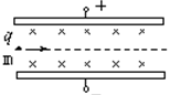 如图所示,在充电的平行金属板间有匀强电场和方向垂直纸面向里的匀强磁场。一带电粒子以速度v从左侧射入,方向垂直于电场方向和磁场方向,当它从右侧射出场区时,动能比射入时小,若要使带电粒子从射入到射出动能是增加的,可采取的措施有(不计重力) ![]()