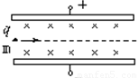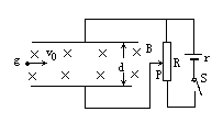 两平行金属板相距为d,板间有磁感强度为B的匀强磁场,按下图所示的方式接入电路.已知电源内阻为r,滑动变阻器的总电阻为R.有一个质量为m、电量为+q的带电粒子,从两板正中间左端水平射入场区,不计重力.