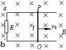 在磁感应强度为B、方向如图所示的匀强磁场中,金属PQ在宽为L的平行金属导轨上以速度v向右匀速滑动,PQ中产生的感应电动势为e1;若磁感应强度增为2B,其它条件不变,所产生的感应电动势大小变为e2。则e1与e2之比及通过电阻R的感应电流方向为 ( )