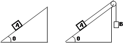 .(12分)如图所示,质量mA=2kg的物体A放在倾角为θ=37°的斜面上时,恰好能匀速下滑。现用细线系住物体A,并平行于斜面向上绕过光滑的定滑轮,另一端系住物体B,释放后物体A沿斜面以加速度a=2m/s2匀加速上滑。(sin37o=0.6,cos37o=0.8)