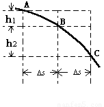 (2)一个同学在《研究平抛物体的运动》实验中,只画出了如下图所示的一部分曲线,于是他在曲线上取水平距离相等的三点A、B、C,量得