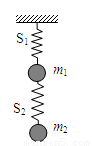 如图1-3-15所示,两根相同的轻弹簧S1、S2,劲度系数皆为k=4×102 N/m.悬挂的重物的质量分别为m1=2 kg和m2=4 kg.若不计弹簧质量,取g=10 N/kg,则平衡时弹簧S1、S2的伸长量分别为( )