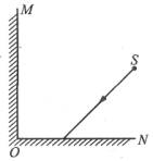 两平面镜MO和NO互相垂直,镜面间有一物点S,如图所示。(1)问S能成几个像?(2)从S发出任意一条光线,试画出这条光线经两个镜面的反射光线的光路图。
