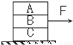 如图所示,A、B、C三个质量相同的木块,迭放在水平桌面上,在施于B的水平恒力F作用下,此三木块保持相对静止,一起沿桌面向右作匀速运动,则