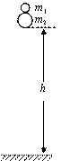 如图所示,两质量分别为m1和m2的弹性小球又叠放在一起,从高度为h处自由落下,且远大于两小球半径,所有的碰撞都是完全弹性碰撞,且都发生在竖直方向。已知m2=3m1,则小球m1反弹后能达到的高度为( )