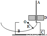 如图所示,B是质量为2m、半径为R的光滑半球形碗,放在光滑的水平桌面上.A是质量为m的细长直杆,被固定的光滑套管C约束在竖直方向,A可上下自由运动.初始时,A杆被握住,使其下端正好与碗的半球面的上边缘接触,然后由静止开始释放A,AB便开始运动.试求A杆下端与球面接触点至碗面的球心O的连线方向和竖直方向的夹角为θ时 ,A和B的速度大小.