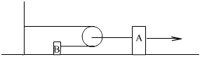 如图所示,物块A、B质量分别为mA=0.8kg,mB=0.3kg,A、B与地面摩擦因素均为0.2,滑轮绳子质量及摩擦均不计。外力F=4N作用于A上,A、B的加速度分别为:![]()