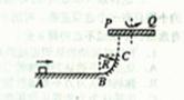 圆弧BC,在c点正上方有一离C点高度也为R的旋转平台,沿平台直径方向开有两个离轴心距离相等的小孔P、Q,旋转时两孔均能达到C点的正上方.若滑块滑过C点后从P孔上升又恰能从Q孔落下,则平台转动的角速度