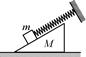 如图所示,斜面体M的底面粗糙,斜面光滑,放在粗糙水平面上.弹簧的一端固定在墙面上,另一端与放在斜面上的物块m相连,弹簧的轴线与斜面平行,若物块在斜面上做周期性往复运动,斜面体保持静止,则地面对斜面体的摩擦力f与时间t的关系图象正确的是( ) ![]()