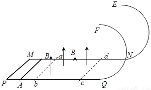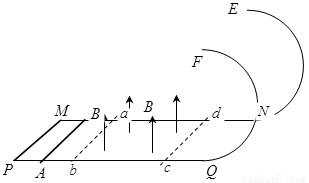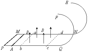和m。为使棒PQ沿导轨运动,且通过半圆轨道的最高点ee',在初始位置必须至少给棒MN以多大的冲量?设两段水平面导轨均足够长,PQ出磁场时MN仍在宽导轨道上运动。