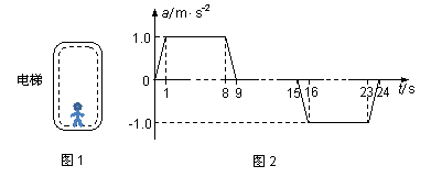(2013北京西城期末)一座大楼中有一部直通高层的客运电梯,电梯的简化模型如图1所示。已知电梯在t = 0时由静止开始上升,电梯的加速度a随时间t的变化如图2所示。如图1所示,一质量为M的乘客站在电梯里,电梯对乘客的支持力为F。根据图2可以判断,力F大小不变,且F<Mg的时间段为