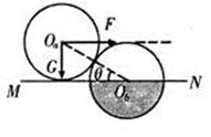如图所示,质量相同且分布均匀的两个圆柱体a、b靠在一起,表面光滑,重力均为G,其中b的下一半刚好固定在水平面MN的下方,上边露出另一半,a静止在平面上,现过a的轴心施以水平作用力F,缓慢的将a拉离平面一直滑到b的顶端,对圆柱体a的移动过程分析,应有
