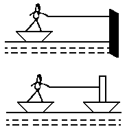 一个小孩站在船头,按图中两种情况用同样大小的力拉绳,过相同的时间t(船未碰撞),小孩所做的功分别为W1,W2,则W1和W2的大小关系是________,在时刻t,小孩拉绳的瞬时功率P1和P2的大小关系是________.