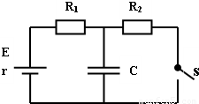 如图所示,电源电动势为E=10V,内阻r=1Ω,R1=3Ω,R2=6Ω,C=30μF.开关S断开时,电容器的电荷量为
