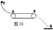 如图10所示,小物块由曲面上的P点自由滑下,通过一粗糙的固定不动的水平的传送带后落到地面上的Q点。若皮带随皮带轮以恒定的速率转动,小物块仍在P点自由滑下,则关于小物块落地点位置的正确判断是( )