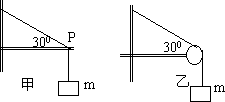 如图甲中一水平轻杆在右端的P点系有两根细线,一根斜上拉且固定,另一根竖直向下连接质量为m的物体而处于平衡,图乙中水平轻杆右端固定,左端连接一个光滑滑轮,用细线绕过滑轮,上端固定而下端连接与甲同样的物体处于平衡.下列说法中正确的是: