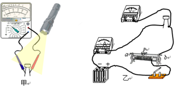 (1)如图甲所示,某同学想用多用电表研究光敏电阻的光照特性(光敏电阻的阻值与光照强弱的关系)时,应将多用表的选择开关置于合适的___________档;将一光敏电阻接在多用电表两表笔上,先用黑纸包裹着光敏电阻,此时表针指在某一位置;现拆下黑纸,并用手电筒照射光敏电阻,则表针将会向__________(填“左”或“右”)偏转。